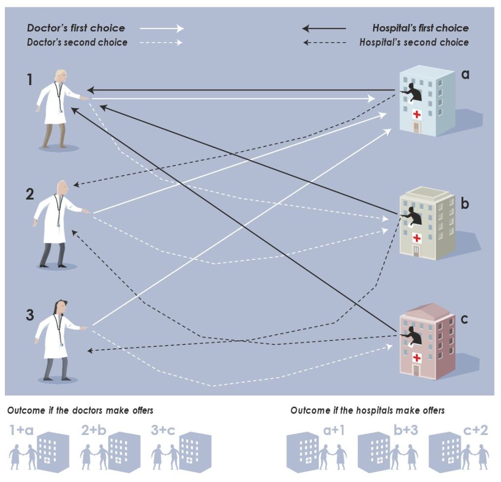 Sự rõ ràng và thanh nhã của bài báo Gale–Shapley đã khiến nó sớm được đưa vào danh mục tài liệu học tập của sinh viên kinh tế trên toàn thế giới. Tuy nhiên, ý nghĩa thực tiễn của công trình này chỉ được nhận ra muộn hơn. Vào đầu những năm 1980, Alvin Roth bắt đầu nghiên cứu một bài toán phân bổ rất thực tế: thị trường dành cho các bác sĩ mới tốt nghiệp.