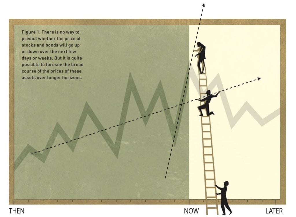 Không có cách nào để dự đoán liệu giá cổ phiếu và trái phiếu sẽ tăng hay giảm trong vài ngày hoặc vài tuần tới. Tuy nhiên, việc dự báo xu hướng chung của giá các tài sản này trong những khoảng thời gian dài hơn, chẳng hạn như ba đến năm năm tới, là hoàn toàn có thể. Những phát hiện này – thoạt nhìn có vẻ vừa bất ngờ vừa mâu thuẫn – đã được phát hiện và phân tích bởi các nhà kinh tế học đoạt giải năm nay: Eugene F. Fama, Lars Peter Hansen và Robert J. Shiller.
