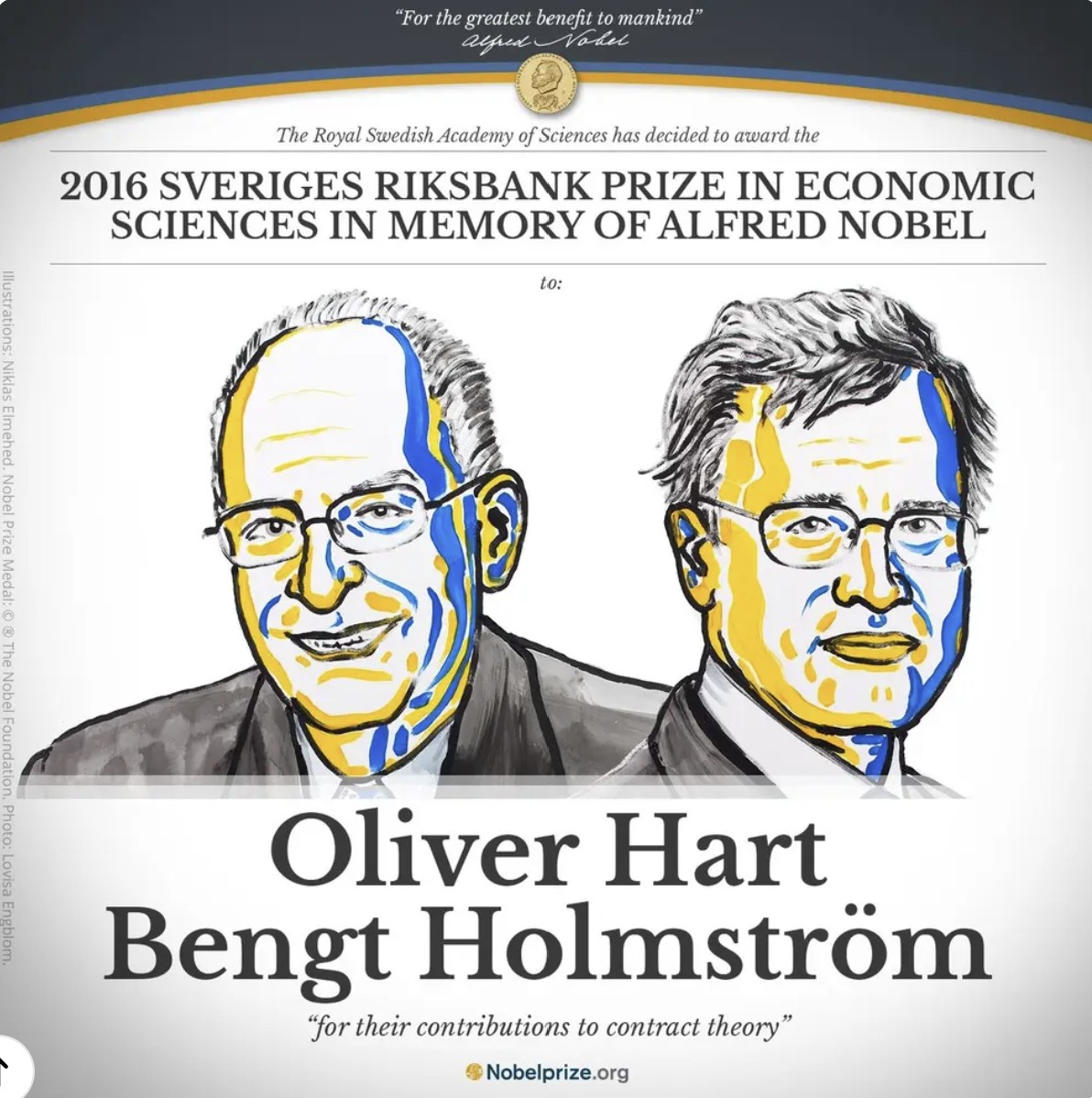 Các hợp đồng đóng vai trò thiết yếu đối với sự vận hành của các xã hội hiện đại. Nghiên cứu của Oliver Hart và Bengt Holmström đã làm sáng tỏ cách thức mà các hợp đồng giúp chúng ta xử lý và điều hòa những lợi ích xung đột giữa các bên.