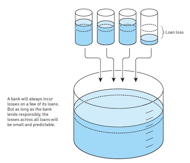 Ngay cả khi ngân hàng thực hiện tốt nhiệm vụ giám sát, vẫn sẽ có một số khoản vay bị thua lỗ. Tuy nhiên, rủi ro một ngân hàng lớn phá sản do các khoản lỗ này là rất nhỏ, miễn là ngân hàng quản lý hoạt động cho vay một cách thận trọng. Điều này bởi vì ngân hàng cho vay một số lượng lớn khách hàng, và ngay cả khi một vài người vay không trả được nợ, mức lỗ trung bình trên toàn danh mục vẫn thấp và có thể dự đoán.